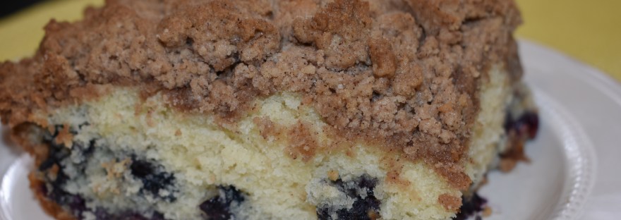 I’m a huge fan of crumb cake. And I love anything with blueberries. So I decided to combine them! I took my yellow cake recipe, which is always super moist, folded some blueberries into it, and topped it with an amazing cinnamon crumb topping (thank you Jackie for the inspiration!), and the result was an incredibly delicious cake. It’s great for a sweet treat at breakfast with a cup of coffee or a fantastic dessert!