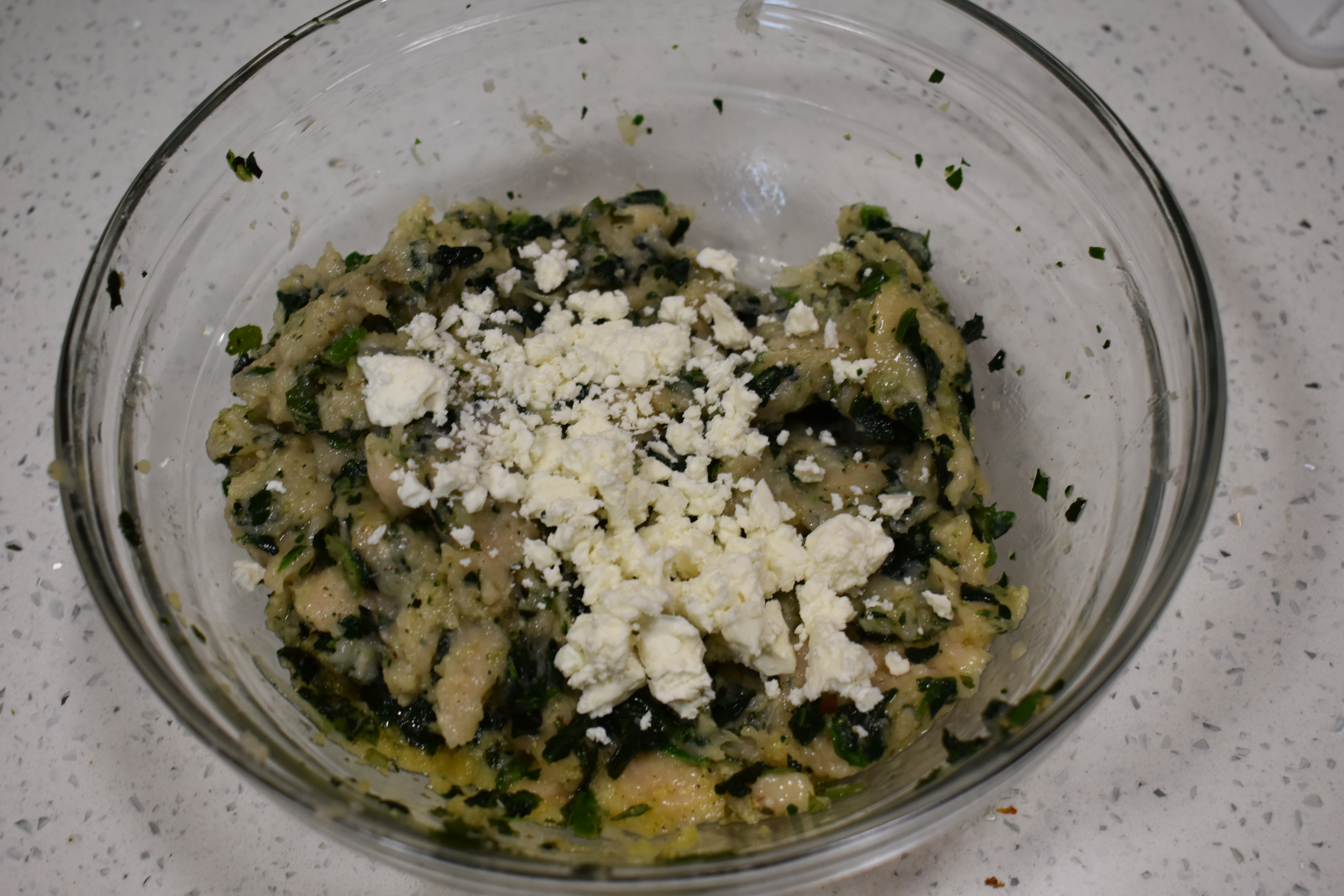 Spinach and Feta Chicken Meatballs over Greek Salad