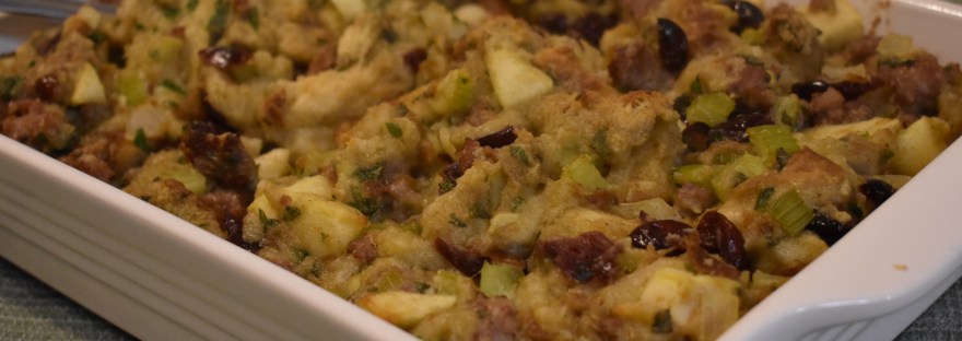 Sausage and Herb Stuffing- A hearty, flavorful stuffing with a hint of sweetness, this recipe combines sausage, apples, craisins, and fresh herbs to create one amazingly delicious side dish.